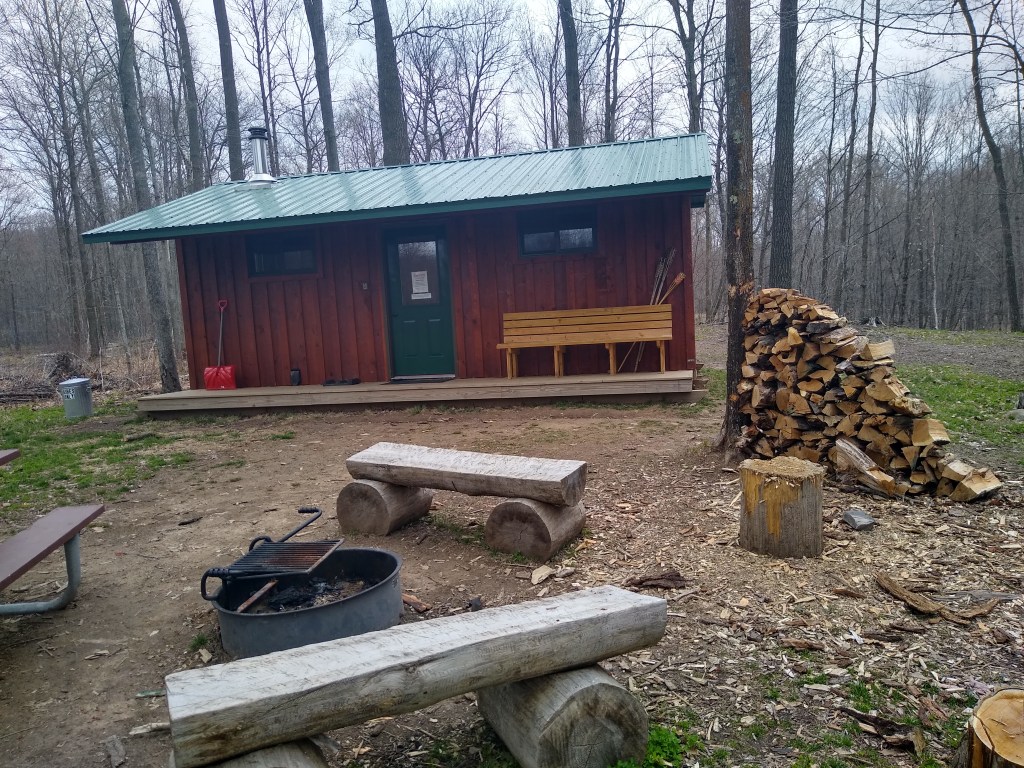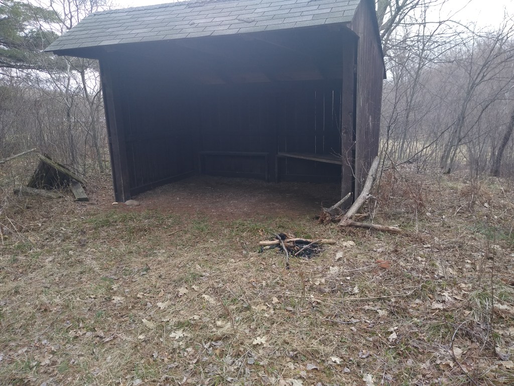 Along the way, I passed two campsites shown above. The one on the left was fairly rustic. You can see that it looks like a shed with one of the large sides open to the elements. I’m not absolutely sure of this, but I think it was erected by the Ice Age Trail Alliance. It is hard to tell because no camping facilities are shown on the map for this segment, although primitive camping is allowed on county forest lands. The campsite on the right is more elaborate. The privy is behind it, A sign said it was available for rent through Burnett County.