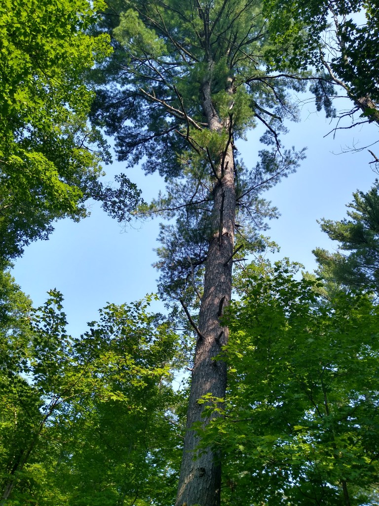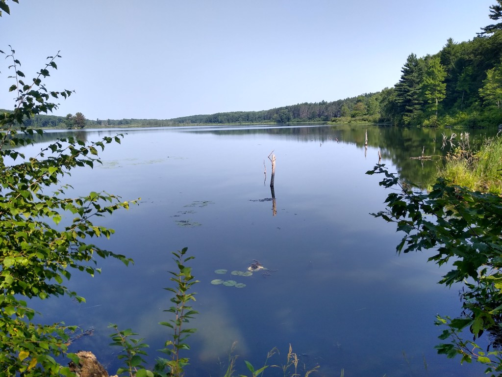 The Straight Lake Segment runs through the IATA’s Frog Pond Reserve, the Tunnel Channel Woods State Natural Area, and Straight Lake State Park. Most of the trail wound its way under a canopy skirting the edge of the Straight River and Straight Lake itself. Whether I was hiking along the river or the lake, the views were sublime – peacefully, spectacularly sublime. On this day, the river and lake waters were as smooth as glass.